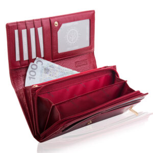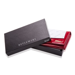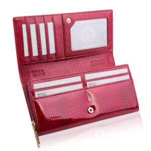 Chcesz mieć duży portfel, który wreszcie pomieści wszystkie karty, dokumenty i pieniądze? Wysokiej jakości modny portfel damski BETLEWSKI®, to model, który zaprojektowaliśmy z dbałością o każdy detal. Jego zewnętrzna strona pokryta jest lakierowaną, naturalną skórą licową o fakturze skóry węża, która nadaje mu wspaniały, połyskujący efekt. Pod względem funkcjonalności i stylu ten bestsellerowy model nie ma sobie równych. Wykonany z myślą o bezpieczeństwie, czerwony portfel wyposażony jest w zaawansowaną technologię RFID Secure, która chroni Twoje karty przed nieautoryzowanym skanowaniem.