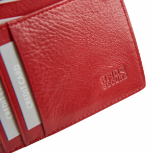 RFID Secure to zintegrowana technologia, która zabezpiecza karty przed nieautoryzowanym odczytem danych. W portfelu, pod wierzchnią warstwą skóry umieszczona jest specjalna membrana blokująca skanowanie kart przez elektronicznych złodziei. Taka ochrona zdecydowanie zmniejsza ryzyko, że Twoje pieniądze i inne ważne dokumenty zostaną skradzione. Dzięki RFID Secure możesz czuć się bezpieczniej. Sygnał emitowany przez specjalne czytniki wykorzystywane do kradzieży zostanie zablokowany. Tym samym uniemożliwia złodziejowi odczyt danych osobistych lub kradzież pieniędzy.