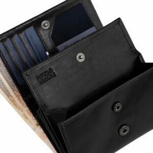 Po jego otwarciu mamy jeszcze jedną szeroką kieszeń zamykaną na zatrzask, która idealnie sprawdzi się jako miejsce na bilon – wygodny i szybki dostęp do pieniędzy to podstawa! W portfelu znajdziesz miejsce także na trochę większe i równie ważne dokumenty, takie jak dowód rejestracyjny (w okładce z wydziału komunikacji), dzięki 1 większej przezroczystej kieszeni z siateczki.