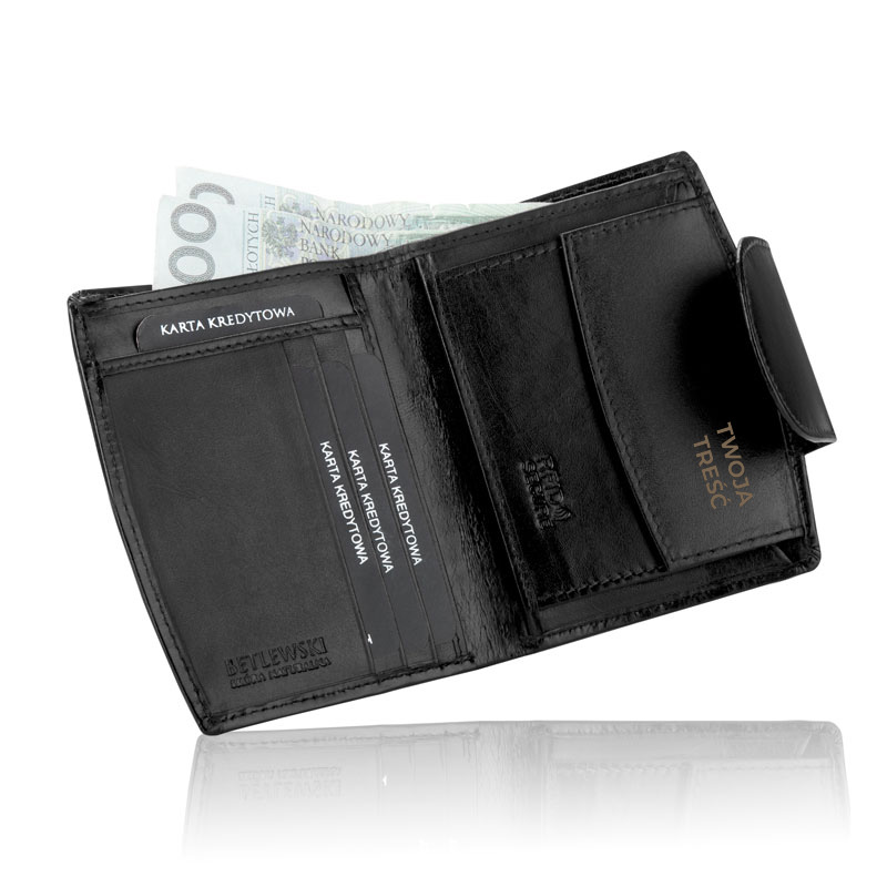 Szukasz skórzanego portfela, który zaspokoi Twoje potrzeby, a do tego jest stylowy i długo Ci posłuży? Grawerowany portfel damski BASIC BETLEWSKI® ma w sobie wszystko, czego potrzebujesz! Portfel damski z grawerem to świetny pomysł na spersonalizowany prezent dla każdej kobiety. Stanowi wyjątkowy i trwały dodatek, na którym możesz wygrawerować wybrane przez siebie litery, np. inicjały, imię lub inne słowo oraz ważną datę. Grawer wykonujemy techniką laserową, więc jest niezwykle dokładny i trwały.