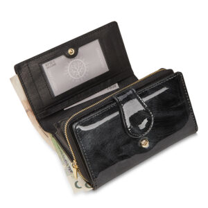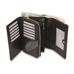 – kieszeni na banknoty na szczycie portfela,