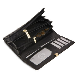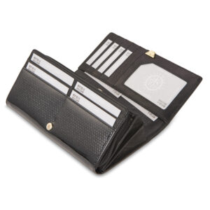 Chcesz mieć duży portfel, który wreszcie pomieści wszystkie karty, dokumenty i pieniądze? Wysokiej jakości modny portfel damski BETLEWSKI®, to model, który zaprojektowaliśmy z dbałością o każdy detal. Jego zewnętrzna strona pokryta jest lakierowaną, naturalną skórą licową, która nadaje mu wspaniały, oryginalny efekt. Wykonany z myślą o bezpieczeństwie, wyposażony jest w zaawansowaną technologię RFID Secure, która chroni Twoje karty przed nieautoryzowanym skanowaniem.
