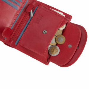 Mimo swoich niepozornych wymiarów, skórzany portfel damski jest rozbudowany i pojemny. W licznych kieszonkach i schowkach możesz znaleźć miejsce na niezbędne przedmioty codziennego użytku czy inne drobiazgi. Zaraz po otwarciu portfela, możesz korzystać z miejsca na: