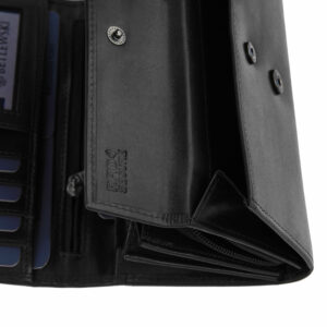 Zapięcie na zatrzask powoli z łatwością otwierać i zamykać portfel, a jego pojemne wnętrze z dużą ilością miejsca na karty zapewni Ci pełną organizację.
