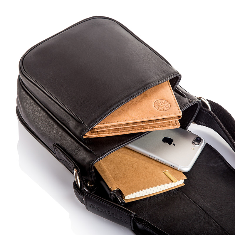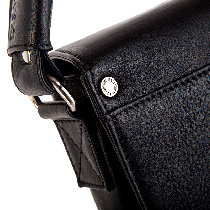 Listonoszka zamykana jest na magnetyczny klips, umieszczony pod pasem z klamerką na spodzie torby – niespotykane i oryginalne zapięcie, które podkreśla nowoczesny charakter produktu. Pod klapą torby znajdują się dwie komory. W większej z nich znajdziesz kieszeń na suwak oraz otwartą kieszonkę, obie wyściełane materiałową podszewką o mocnym splocie, co gwarantuje trwałość i elegancję.