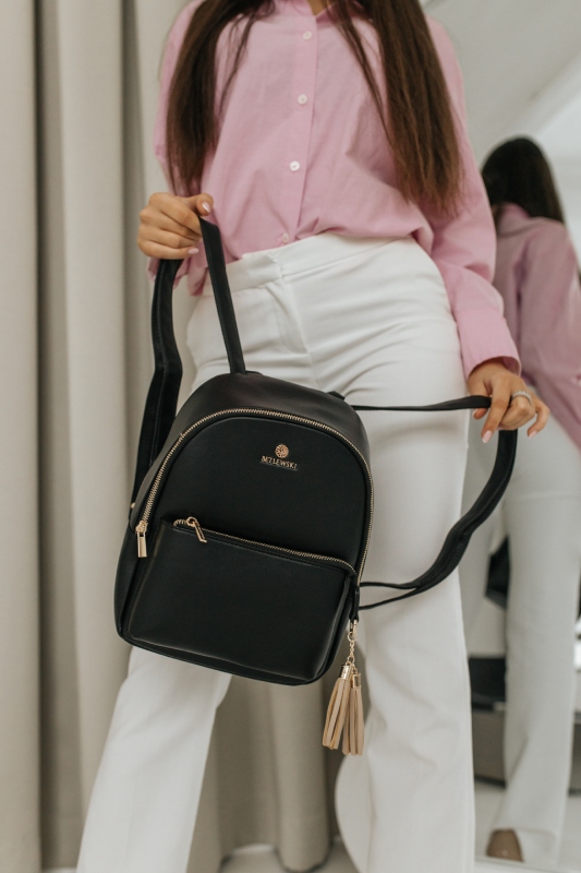 Plecak damski MILEY BETLEWSKI® z ekoskóry to połączenie elegancji i praktyczności, które sprawdzi się zarówno w codziennych, jak i bardziej wyszukanych stylizacjach. Wykonany z gładkiej i miękkiej skóry ekologicznej, plecak jest przyjemny w dotyku i prezentuje się niezwykle stylowo.