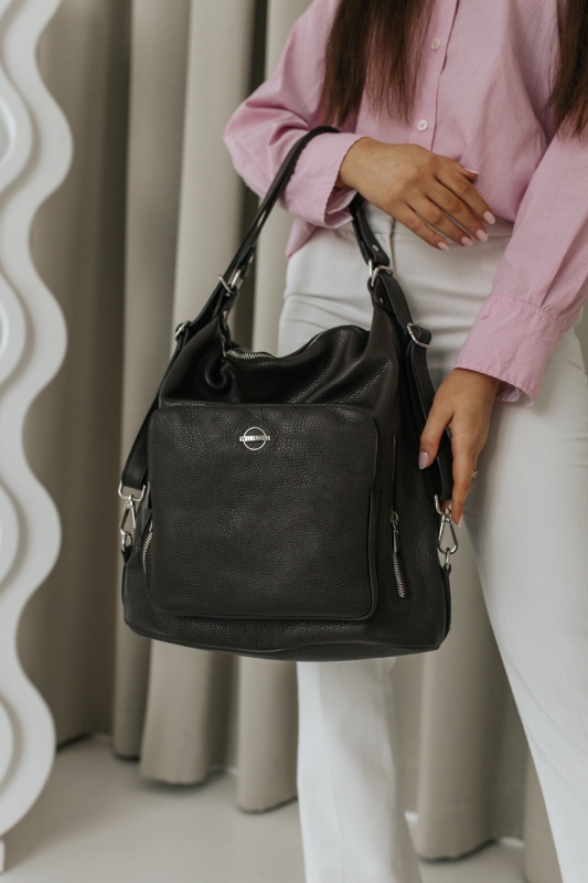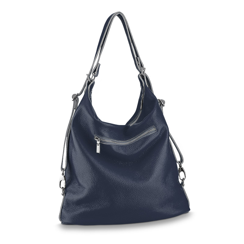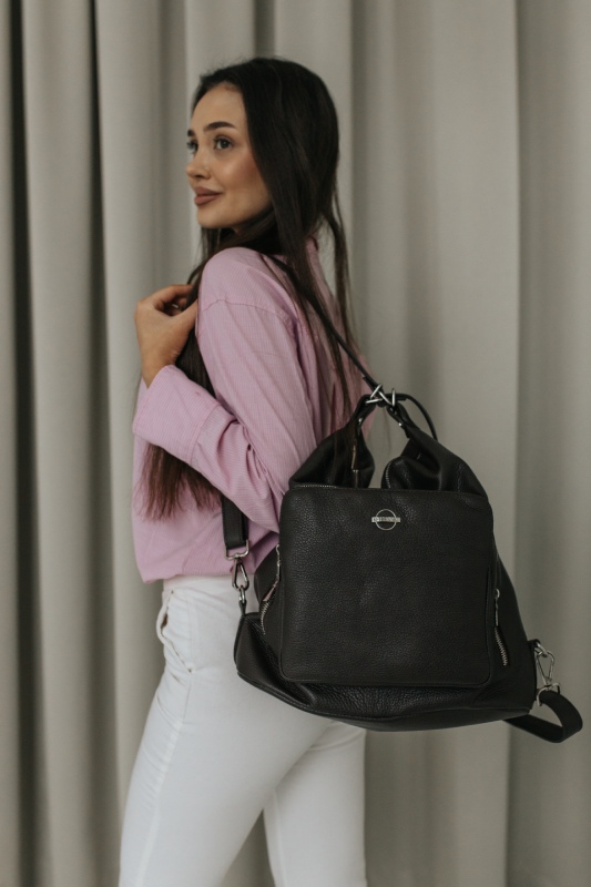 Sprawdź naszą wyjątkową torbę, którą możesz nosić na 2 sposoby: tradycyjnie na ramieniu lub na plecak jako plecaczek na dwóch regulowanych szelkach – wystarczy jedno pociągnięcie paska! Torba-plecak wykonana jest miękkiej, pachnącej skóry naturalnej o półmatowej, groszkowanej fakturze – dzięki zastosowaniu tego rodzaju skóry torba jest bardzo lekka, świetnie się układa i zapewnia wysoki komfort noszenia.