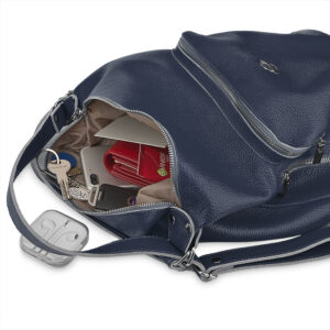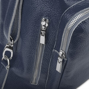Torebka damska zamykana jest od góry na suwak. Torba posiada 1 dużą, pojemną komorę, bez problemu mieszczącą format A-4. Komora wykończona jest elegancką, czarną podszewką. Torebka posiada na froncie 3 kieszenie zamykane na suwaki w kolorze srebra. Największa kieszeń znajduje się na środku. 2 mniejsze, pionowe kieszonki mieszczą się po jej bokach. Z tyłu plecaka znajduje się kolejna kieszeń na zamek. Jest ona doskonała na ważne przedmioty – kieszeń z tyłu jest trudno-dostępnym miejscem dla kieszonkowców. Torbo-plecak na paskach posiada klamerki umożliwiające regulację długości szelek. Dzięki nim można je wydłużyć maksymalnie do ok. 70 cm.
