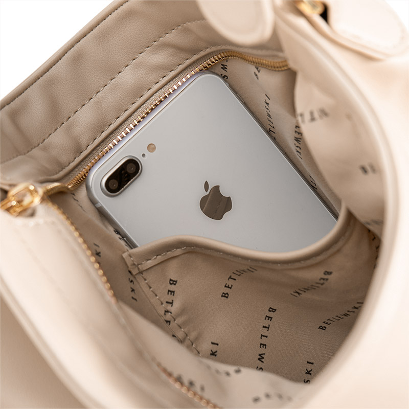 Torebka MILEY BETLEWSKI® jest nie tylko praktyczna, ale i stylowa. Złote okucia dodają jej luksusowego charakteru, a metalowe logo marki w złotym kolorze podkreśla jej ekskluzywność. Do torebki dołączony jest również biały worek ochronny, który chroni ją przed kurzem i umożliwia bezpieczne przechowywanie.