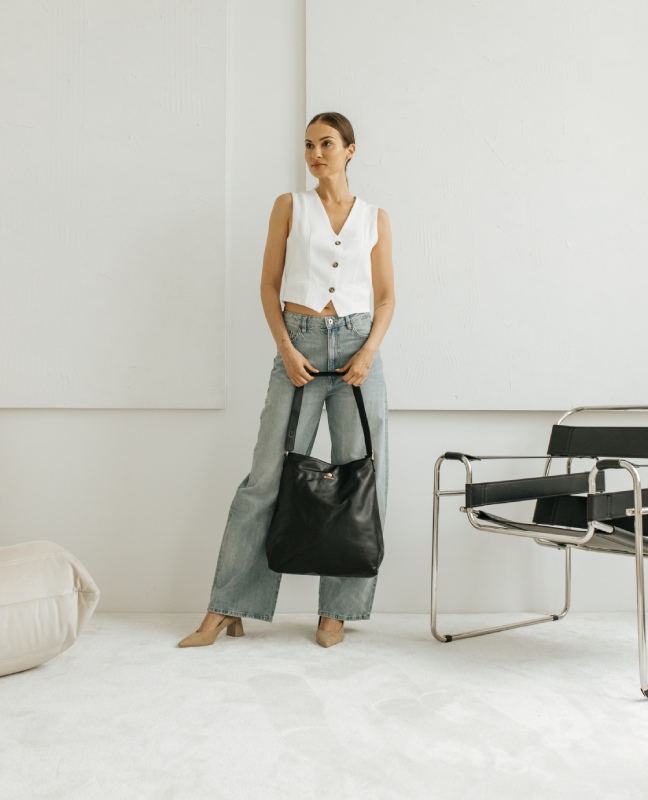 Ta pojemna torba damska z ekoskóry to doskonały wybór dla każdej kobiety, która pragnie podkreślić swój styl i elegancję. Dzięki połączeniu wysokiej jakości materiałów, funkcjonalności oraz stylowych detali, torebka typu worek MILEY z pewnością stanie się Twoim ulubionym dodatkiem. Daj się oczarować jej urokiem i dodaj ją do swojej stylizacji już dziś!