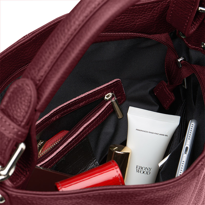 Model CASSIA oferuje jedną przestronną komorę oraz aż siedem kieszeni, które umożliwiają doskonałą organizację. Z tyłu torebki znajduje się płaska kieszeń zapinana na zamek, w której można bezpiecznie przechować drobiazgi. Wewnątrz komory umieszczono dwie otwarte wsuwane kieszenie oraz kieszeń na zamek. Dodatkowo, szeroka kieszeń na zamek dzieli komorę na dwie części, co ułatwia segregację zawartości. Po obu bokach torebki znajdują się zamykane kieszenie, które stanowią idealne miejsce na małe, podręczne akcesoria.