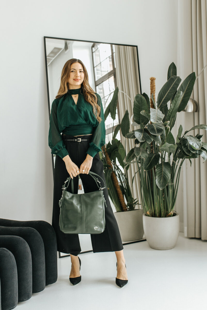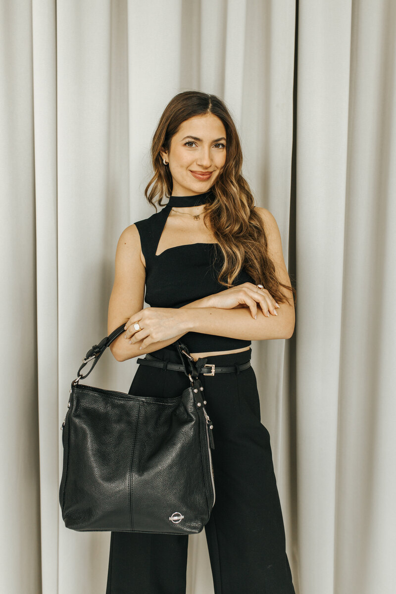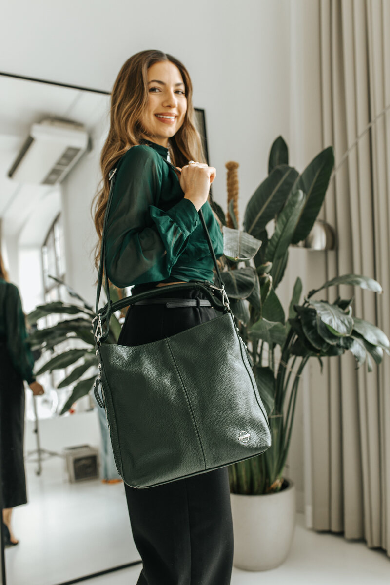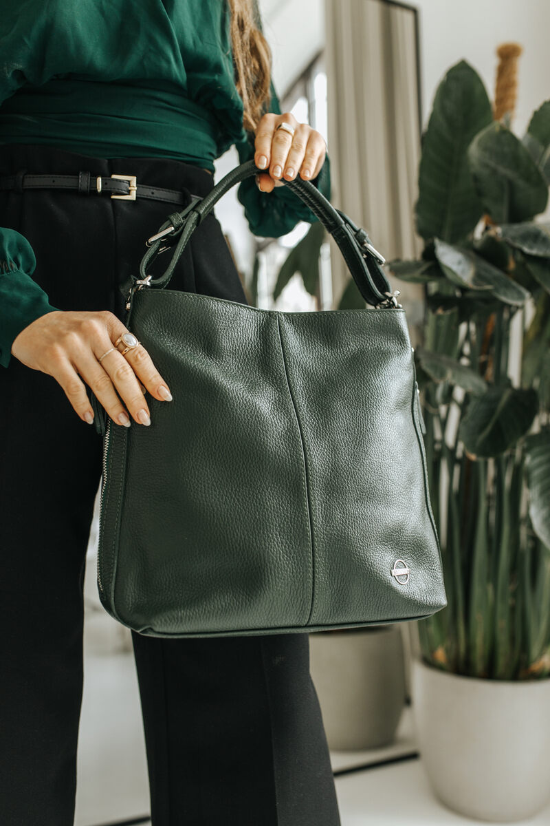 Klasyczna torebka CASSIA jest wyposażona w srebrne okucia i solidne zapięcie na zamek błyskawiczny, które nadają jej elegancki charakter i gwarantują trwałość.