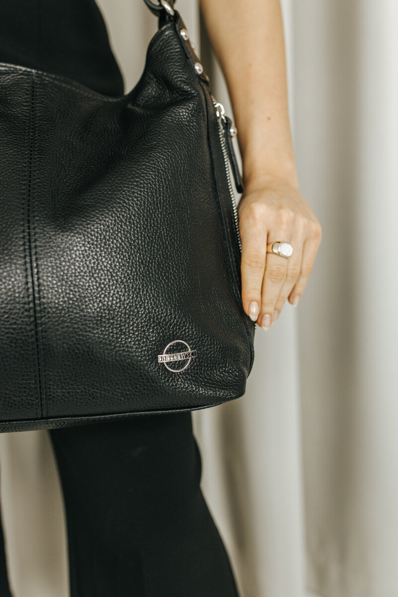 Elegancka torebka CASSIA BETLEWSKI® jest idealna dla kobiet poszukujących stylowego dodatku o wyjątkowej funkcjonalności. Wykonana z najwyższej jakości naturalnej skóry licowej o groszkowej fakturze, łączy minimalistyczną estetykę z praktycznymi rozwiązaniami.