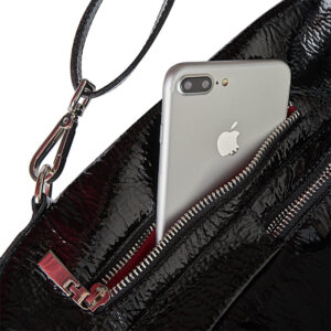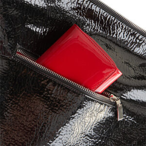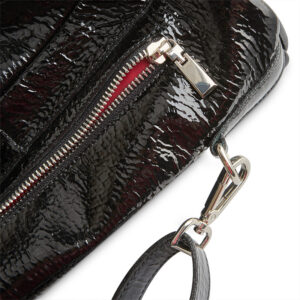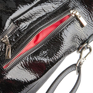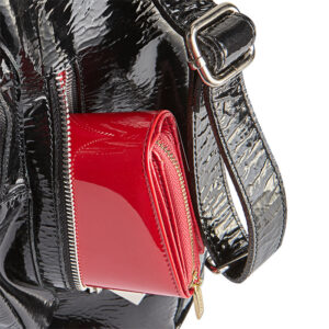 Torebka – plecak z kole Alexa Flare wykonana jest z wysokiej jakości włoskiej skóry naturalnej. Lakierowanie i wytłaczany wzór w stylu zgnieceń to najnowszy krzyk mody. Jej wnętrze wyściełane jest czerwoną, satynową podszewką, która doskonale komponuje się z całością. Po bokach umieszczono srebrne ozdoby, a także suwaki co podkreśla piękno lakierowanej skóry.