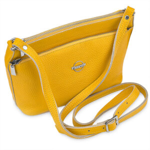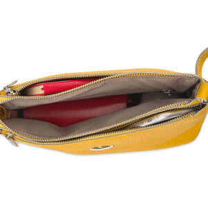 Torba posiada 3 komory zamykane od góry na mocne suwaki. Taki układ ułatwia organizację przedmiotów wewnątrz torebki. Choć rozmiary torebki nie są zbyt wielkie to zmieści ona bardzo dużo. Bez problemu schowasz do niej telefon, portfel czy mały notes. Wewnątrz głównej, środkowej komory znajduje się 1 mała kieszonka zamykana na suwak, idealna na małe przedmioty. Listonoszka posiada długi [max. 120 cm], skórzany pasek do noszenia na ramieniu. Posiada on możliwość 5-stopniowej regulacji długości. Na pasku znajduje się klamerka, która umożliwia tę regulację. Torebka została wykończona mocnymi elementami w kolorze srebra. Świetnie komponują się z barwą torebki.