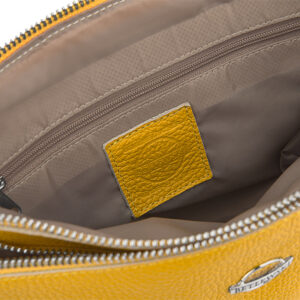 Torebka posiada na froncie naszywkę z metalowym logo marki. Stanowi ona delikatny, ozdobny akcent w kolorze srebrnym. Tuż pod główną komorą, na froncie, a także z tyłu znajdziesz jeszcze praktyczną kieszonkę zamykaną na suwak. Do torebki przyczepiono metki potwierdzające oryginalność produktu oraz informację dotyczące konserwacji skór naturalnych, a także próbkę skóry, której użyto do produkcji torebki.