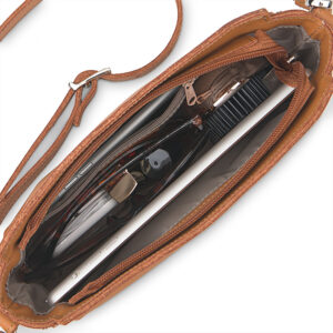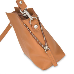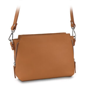 Na froncie torebka ma naszywkę z tłoczonym logo marki lub przymocowane na wąsy kaletnicze logo. Stanowi to również delikatny, ozdobny akcent. Po bokach torebki znajdują się 2 ozdobne suwaki w kolorze srebra. Torebka została wytworzona z miękkiej, bydlęcej, pachnącej skóry naturalnej. Posiada wyjątkową, gładką fakturę. Dzięki niej torebka jest bardziej odporna na zarysowania. Listonoszka została wyprodukowana w Polsce z włoskiej skóry. Skóra naturalna to szlachetny materiał, który będzie służył przez wiele lat. Do torebki przyczepiono metki potwierdzające oryginalność produktu oraz informację dotyczące konserwacji skór naturalnych, a także próbkę skóry, której użyto do produkcji torebki.