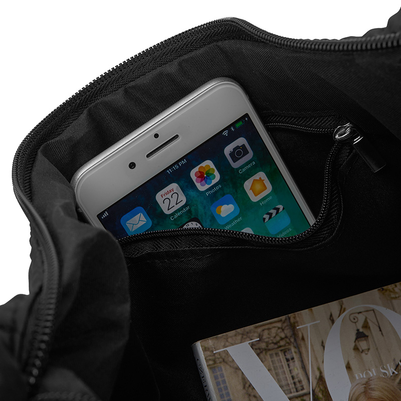 Model zapinany jest na praktyczny zamek błyskawiczny, który chroni zawartość i zapewnia wygodny dostęp do wnętrza. W środku znajduje się jedna przestronna komora z dodatkową kieszenią w podszewce, zamykaną na suwak, idealną na drobne akcesoria, dokumenty czy telefon. Torebka bez trudu mieści format A4, co czyni ją świetnym wyborem zarówno do pracy, jak i na uczelnię czy spotkania biznesowe.