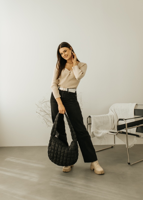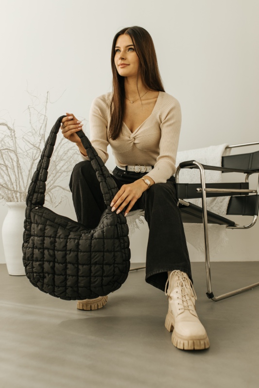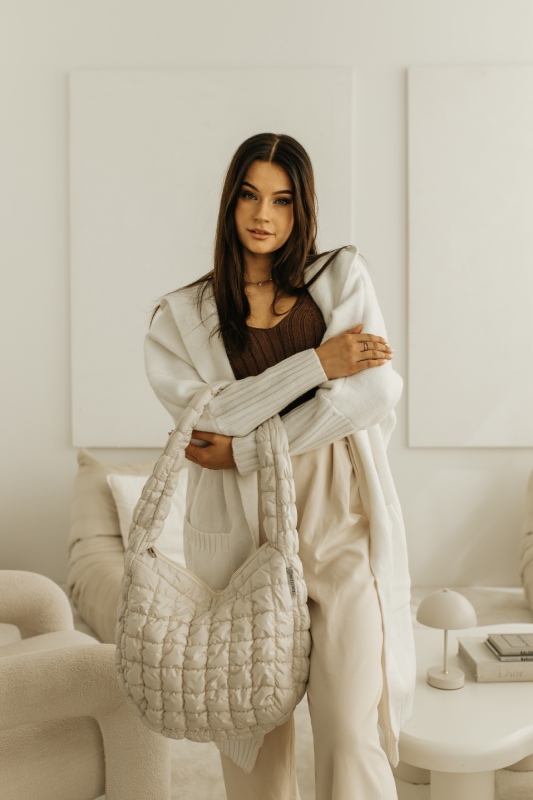 Pikowana torebka CLOUDY BETLEWSKI® to model stworzony z myślą o chłodniejszych miesiącach. Jej miękka faktura przypomina w dotyku puchową kurtkę, co nadaje całości przytulnego, zimowego klimatu. To idealny dodatek do jesiennych i zimowych stylizacji. Świetnie komponuje się z ciepłymi płaszczami, wełnianymi szalikami czy pikowanymi kurtkami, tworząc spójny, modny zestaw.