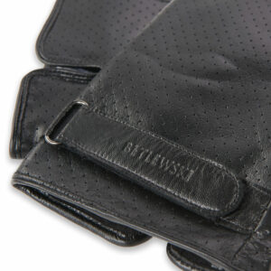 Rękawiczki męskie wykonane z z naturalnej skóry owczej. Ocieplone miękką i przyjemną w dotyku podszewką wykonaną z tkaniny poliestrowej. Klasyczny, prosty krój rękawiczek i ozdobne otworki w skórze sprawia, że będą pasować do wielu stylizacji. Na wewnętrznej stronie na środku umieszczone zostało małe nacięcie oraz zapięcie na rzep ułatwiające wkładanie czarnych rękawiczek.