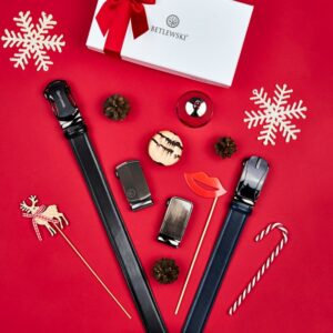 Paski są starannie zapakowane w białe pudełko prezentowe z logiem marki Betlewski® i ozdobione delikatną wstążeczką. Całość jest już przygotowana do wręczenia, dzięki czemu zaoszczędzisz czas na szukanie odpowiedniego opakowania prezentowego. Oba dodatki idealnie się ze sobą komponują, nadając prezentowi niezwykły, podniosły charakter.