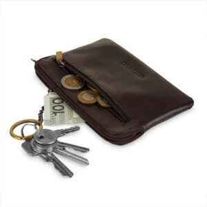 Minimalistyczny dodatek jakim jest etui na klucze CLASSIC to produkt, w którym zabezpieczysz różnego rodzaju klucze. Podstawową funkcją etui jest ochrona kieszeni i wnętrza toreb przed niechcianymi uszkodzeniami, dziurami i pęknięciami, które mogą spowodować rzucone luzem klucze. Dwie zamykane na suwak komory pozwolą przechowywać w nim większą ilość kluczy – klucze samochodowe, do mieszkania czy nawet kartę dostępu. W większej komorze znajduje się metalowe kółeczko na łańcuszku, dzięki któremu klucze zawsze będą na miejscu.