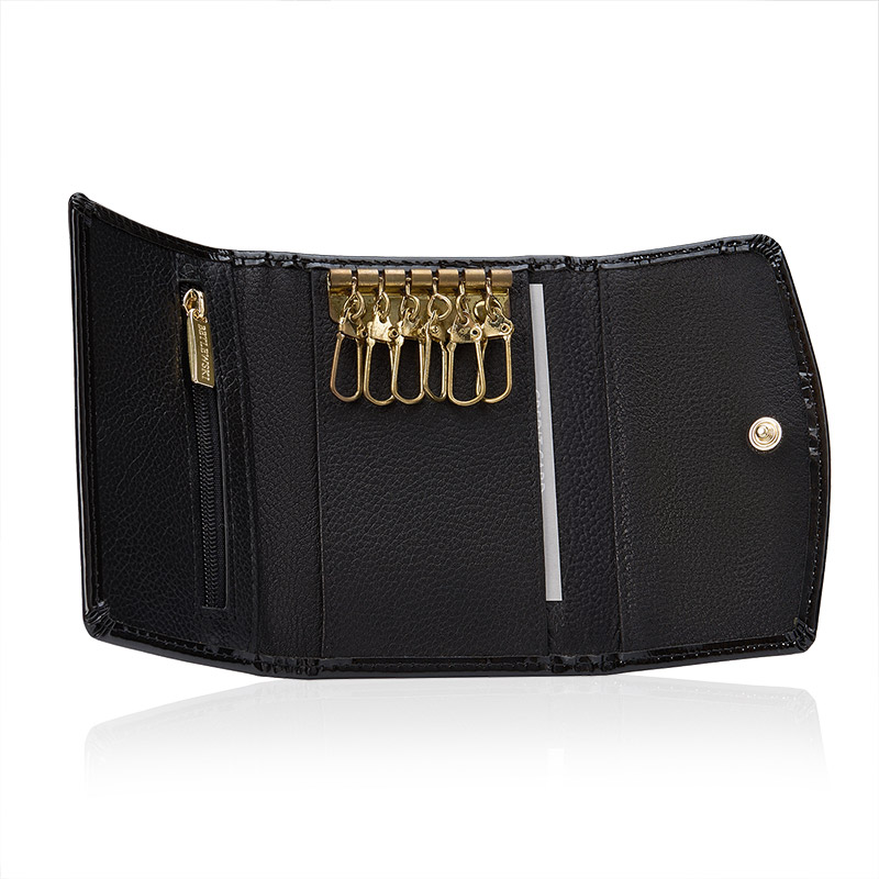 Niewielkie etui wykonane z wysokiej jakości skóry naturalnej, zachwyca subtelnym połyskiem i eleganckim wykończeniem. Doskonale zabezpiecza klucze i stanowi stylowy dodatek do każdej torebki.