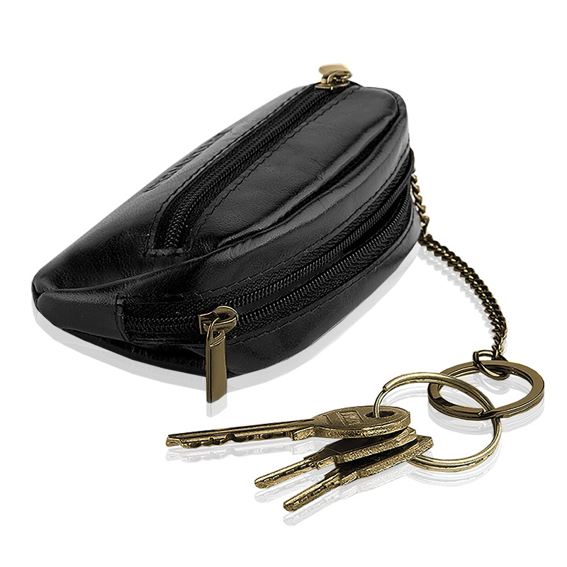 Czarne etui z kolekcji BIZNES wykonane z wysokiej jakości skóry naturalnej pozwala bezpiecznie przechowywać klucze, zapobiegając zarysowaniu wnętrza torebki. Prosty, elegancki design i subtelne logo marki dodają mu nowoczesnego charakteru.