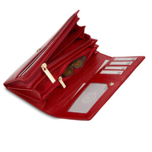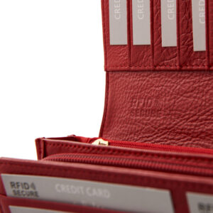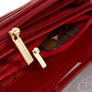 Duży, lakierowany portfel damski FRIDA z grawerem to świetny pomysł na spersonalizowany prezent dla kobiety. Stanowi wyjątkowy i trwały dodatek, na którym możesz wygrawerować wybrane przez siebie litery, np. inicjały otoczone motywem serca lub heksagonu. Grawer wykonujemy techniką laserową, więc jest niezwykle dokładny i trwały. Wykonany jest z naturalnej skóry licowej, a jego zewnętrzna strona pokryta jest warstwą lakieru, która nadaje mu wspaniały, oryginalny efekt. Wykonany z myślą o bezpieczeństwie, czerwony portfel wyposażony jest w zaawansowaną technologię RFID Secure, która chroni Twoje karty przed nieautoryzowanym skanowaniem.