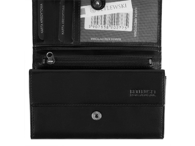 Żaden inny portfel damski nie przetrwa dłużej, niż ten wykonany z wysokiej jakości skóry naturalnej. Oryginalny portfel damski CLASSIC BETLEWSKI® wykonany jest ze skóry licowej. Ponadczasowy design sprawia, że jest stylowy i modny przez cały czas. Bezpiecznie przechowa wszystkie rzeczy, które potrzebujesz na co dzień. Zapięcie na zatrzask powoli z łatwością otwierać i zamykać portfel. Teraz możesz uczynić go jedynym w swoim rodzaju! Portfel damski z grawerem to świetny pomysł na spersonalizowany prezent dla kobiety. Stanowi wyjątkowy i trwały dodatek, na którym możesz wygrawerować wybrane przez siebie litery, np. inicjały, imię lub inne słowo oraz ważną datę. Grawer wykonujemy techniką laserową, więc jest niezwykle dokładny i trwały.