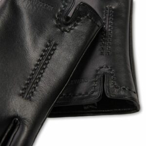 Klasyczne rękawiczki damskie wykonane z owczej skóry naturalnej. Luksusowe, ocieplane czarne rękawiczki zachwycają estetyką wykonania i dbałością o szczegóły. Miękka w dotyku podszewka będzie chronić Twoje dłonie przez zimnem i zapewni Ci wysoki komfort użytkowania. Rękawiczki skórzane damskie w klasycznym czarnym kolorze to must have każdej kobiety, która ceni sobie eleganckie, a przy tym uniwersalne i ponadczasowe akcesoria. Ich styl bez trudu wkomponuje się w Twoje stylizacje – możesz je nosić do płaszcza, kurtki czy ciepłego trencza. Mankiety z małym rozporkiem na boku sprawią, że będziesz mogła w nich wygodnie poruszać dłonią — w razie potrzeby można je również delikatnie podwinąć. Skóra owcza jest bardzo trwała, a jednocześnie elastyczna — to właśnie dzięki niej Twoje nowe skórzane rękawiczki będą wyglądać świetnie i idealnie dopasują się do Twoich dłoni.