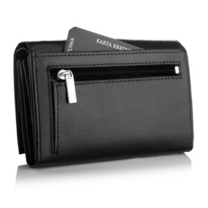 Szukasz na prezent czegoś wyjątkowego, a zarazem funkcjonalnego? Chcesz mieć pewność, że Twój prezent nie zostanie rzucony w kąt i obdarowana będzie cieszyć się z niego każdego dnia? Nie można trafić lepiej! Kobiety uwielbiają tego typu prezenty, dlatego przedstawiamy Ci nasz wspaniały zestaw prezentowy dla niej – skórzany portfel damski w czarnym kolorze. Portfel to chyba jedna z najczęściej używanych rzeczy, a z pewnością zajmuje szczególnie ważne miejsce w każdej damskiej torebce. Do tego skóra, z której jest wykonany sprawi, że można się nim cieszyć przez długie lata! Zestaw idealny – wybierz i przekonaj się, że nie znajdziesz już lepszego!