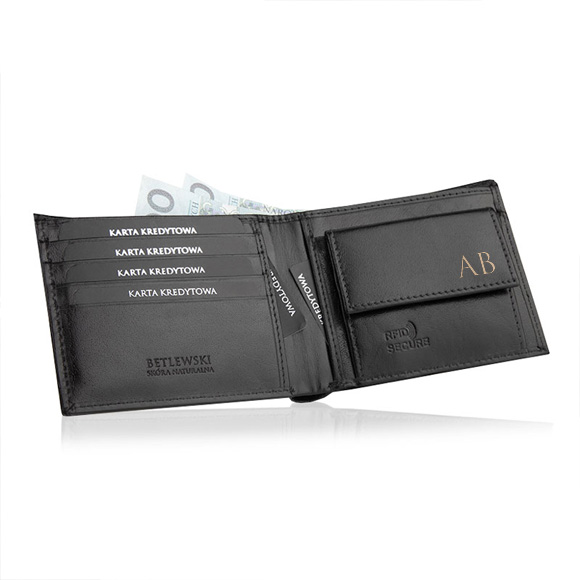 Dodatkowo portfel męski Betlewski® wzbogacony jest o bezpieczną technologię RFID Secure, która chroni Twoje karty przed kradzieżą pieniędzy i cennych danych osobowych.