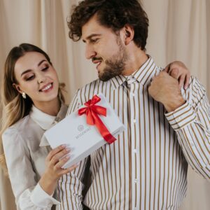 Nasz zestaw skarpetek COMFY zapakowany jest w eleganckie, białe pudełko prezentowe z logo marki. Zdobi je delikatna, czerwona wstążeczka na elastycznej gumce. Koniec z szukaniem pasujących torebek i papierów prezentowych – masz upominek gotowy do wręczenia!