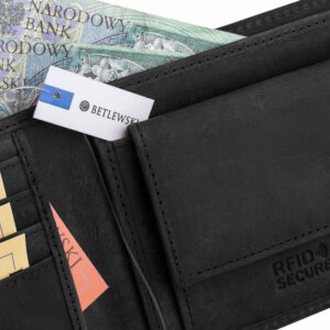 Skórzany portfel męski wykonany jest z pełnowartościowej i wytrzymałej bydlęcej skóry naturalnej, która sprawia, że jest niezwykle stylowy. Z biegiem czasu nabiera wyjątkowego charakteru, dostosowując się do użytkownika i jego sposobu użytkowania. To ponadczasowy i elegancki dodatek, którego estetyczny wygląd sprawia, że jest uniwersalny i zawsze pasuje do wielu stylizacji, bez względu na okazję. Nie ważne czy będzie używany na biznesowym spotkaniu, czy gdziekolwiek indziej — jest wystarczająco kompaktowy, aby wsunąć go bezpiecznie do kieszeni spodni, marynarki czy kurtki. Dodatkowo ten bestsellerowy model wyposażony jest w zaawansowaną technologię RFID Secure, która chroni karty przed skanowaniem, a tym samym kradzieżą pieniędzy i cennych danych osobowych. Z takim portfelem można czuć się pewnie i bezpiecznie!