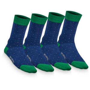 To nie koniec – w zestawie znajdziesz także 2 pary granatowych skarpetek w kropki. Są klasyczne i zawsze eleganckie, dobrze przylegają do stopy, ale przepuszczają powietrze i nie uciskają kostek – nosi się je naprawdę komfortowo!
